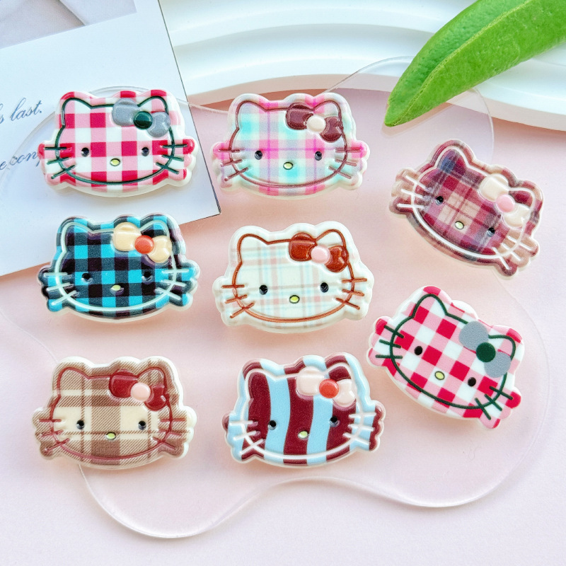 かわいい秋冬新作ベージュ色kt猫頭格子アクリルdiyヘアピン髪飾り材料卸売り