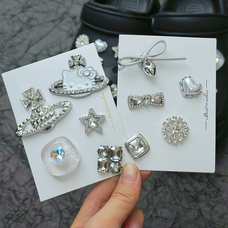 レトロシルバーフルダイヤモンドシリーズ diy スターアースホールシューズアクリル靴フラワーベルト靴バックルクロスシューズトップ
