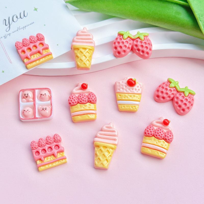 いちごケーキ食游シリーズ樹脂diyアクセサリー携帯ケース洞靴パッチヘアクリップ髪飾り材料