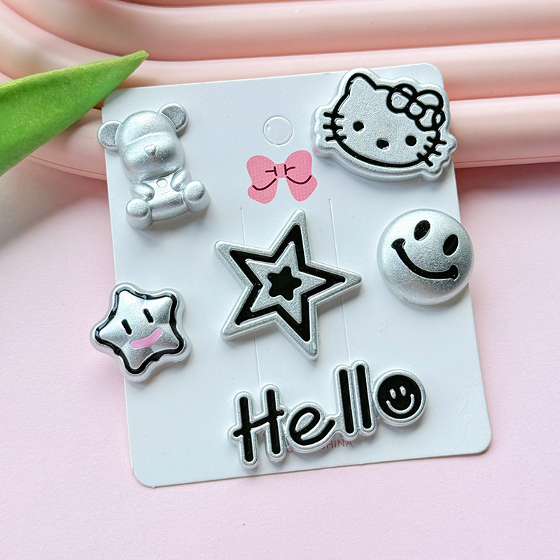 小さなカードDIY樹脂製漫画アクセサリー、小さなパンダ、猫、スマホケース用ステッカー、五芒星、ハート、ヘアピン、アクセサリー、装飾品