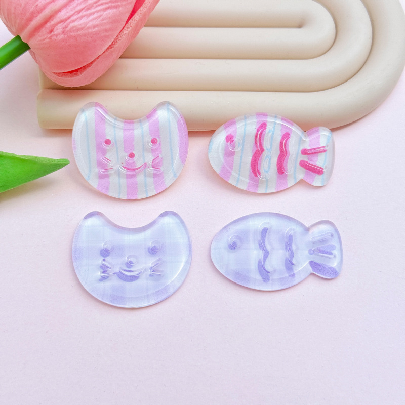 アクリル製小魚猫頭飾りヘアピンDIYアクセサリー携帯電話ケースクリーム接着剤パッチ穴あき靴素材靴飾り