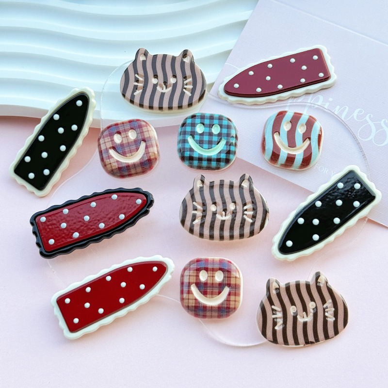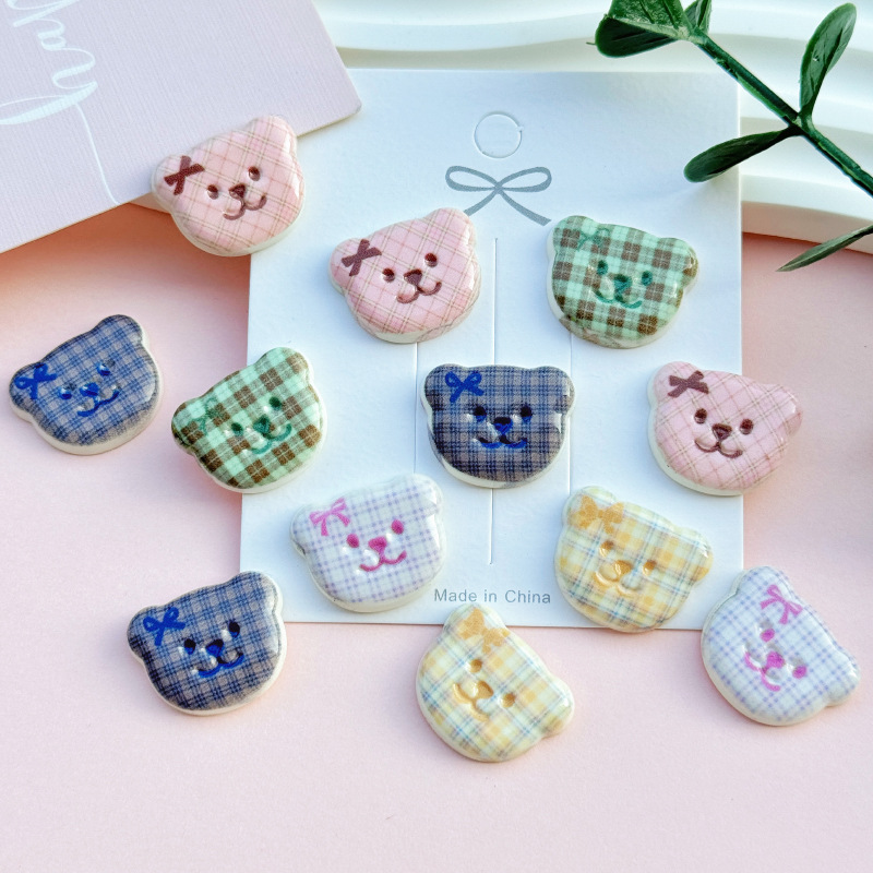 格子熊頭シリーズアクリルdiyアクセサリー携帯ケース洞靴パッチヘアクリップ髪飾り材料