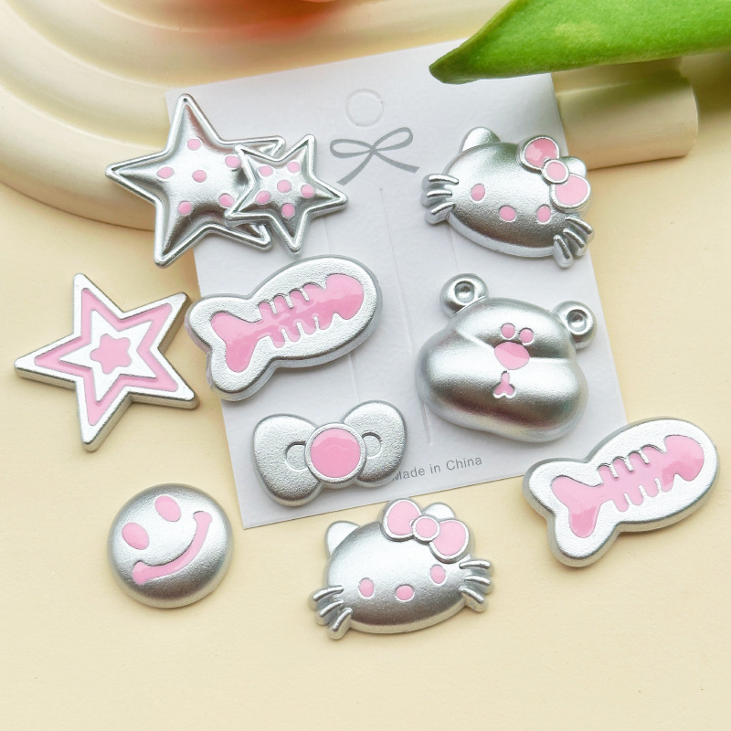 高級感猫銀灰ピンク系アクリルdiyアクセサリー携帯ケースパッチヘアアクセサリー材料