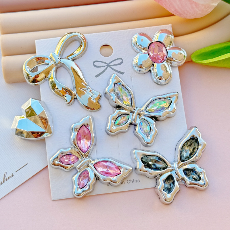 蝶メッキアクリルdiyアクセサリー携帯ケース穴靴パッチヘアクリップ髪飾り材料