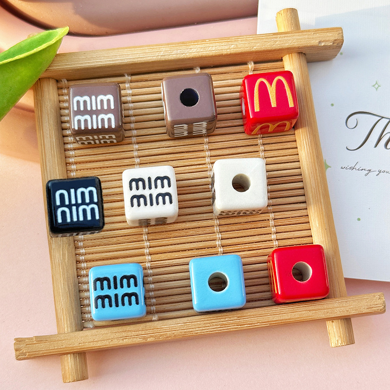 アクリル12mmブロックプリントmin靴ボタンDIY手作りビーズ散珠携帯チェーン髪ひもブレスレット材料