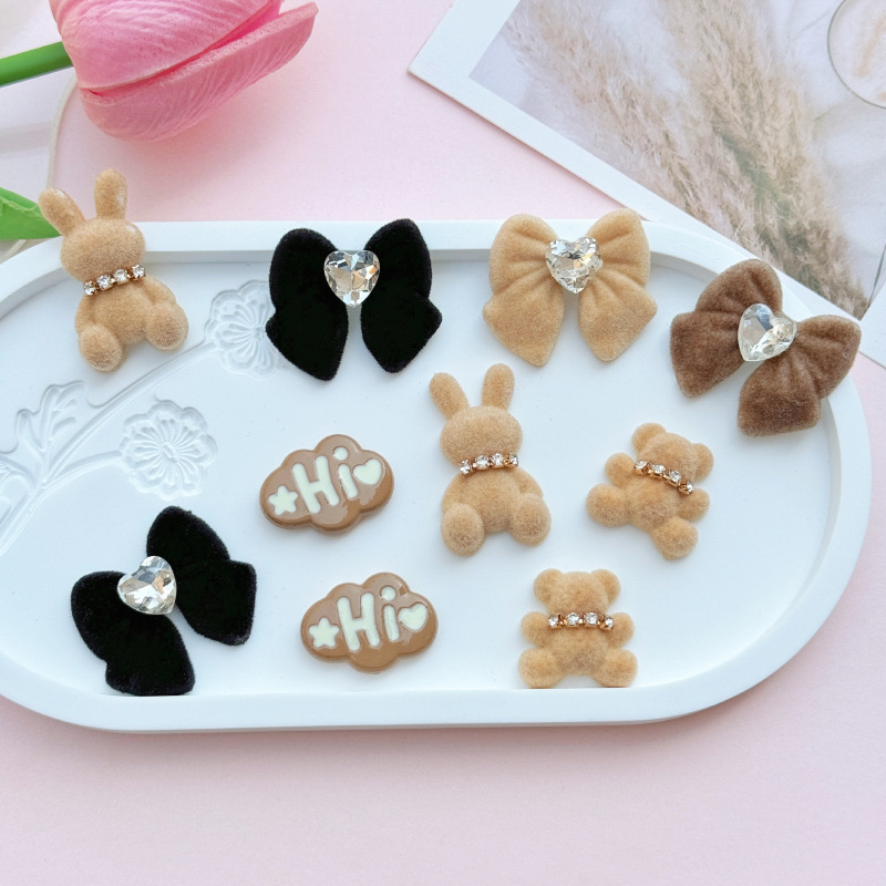 植毛ウサギ熊アクリルdiyアクセサリー携帯ケース靴ボタン靴花パッチヘアクリップ髪飾り材料