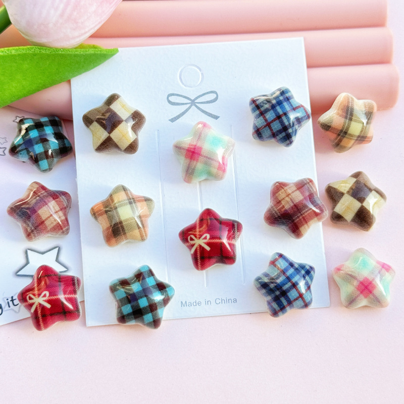 甘い格子縞プリント五角星diyアクリル部品携帯ケース靴花パッチヘアクリップ髪飾り材料