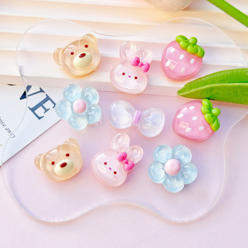 透色熊ウサギいちご樹脂diyアクセサリー携帯電話ケース洞靴子供髪ひもパッチ材料