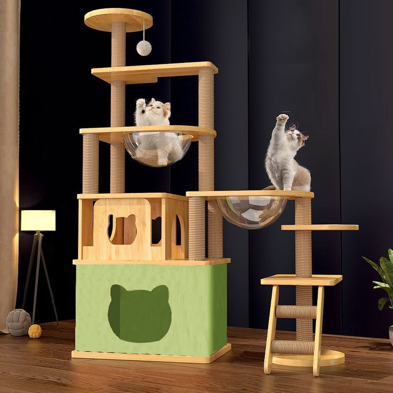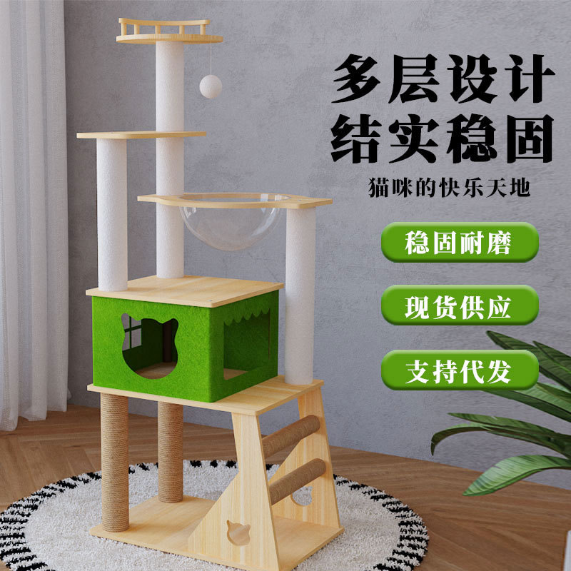 猫クライミングフレーム無垢材スペースカプセル猫の巣猫の木統合大型ジャンプ台スクラッチポスト安定した松猫のおもちゃドロップシッピング