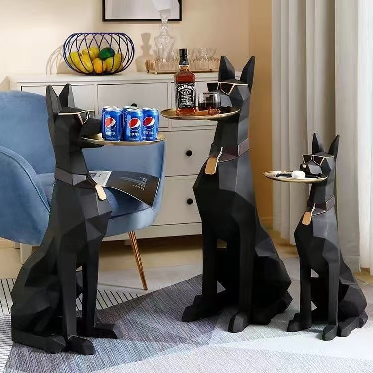 創意的に着地した紳士犬の置物が軽くて豪華なリビングルームに飾られています。