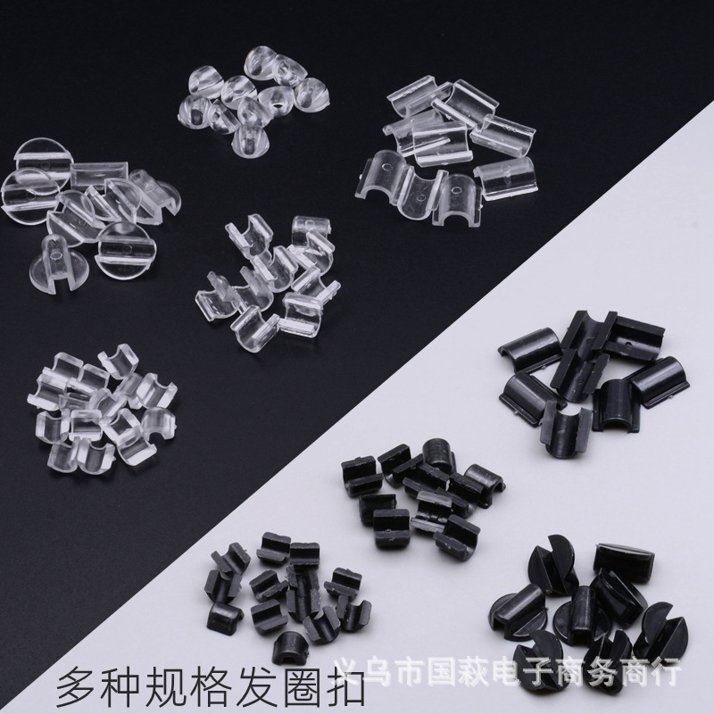 ヘアループ角型円形黒色透明プラスチック皮筋貼りボタンdiy手作りヘアロープアクセサリー部品