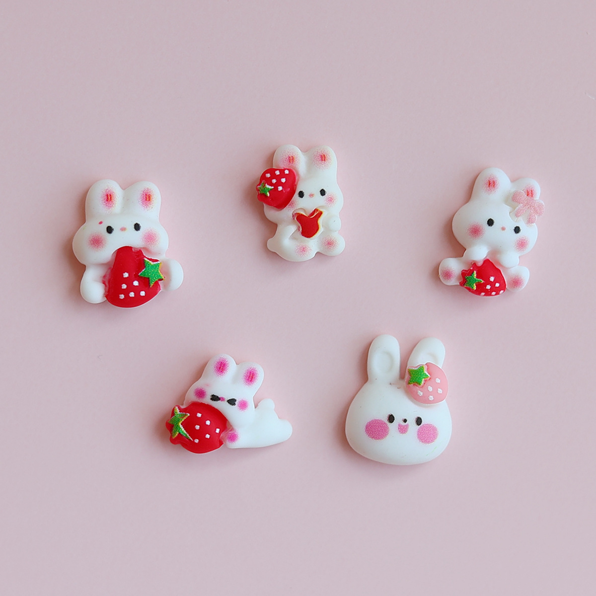 ピンクのいちごウサギdiy樹脂アクセサリーアニメ動物ウサギウサギ頭ウサギ体愛ウサギ髪クリップ