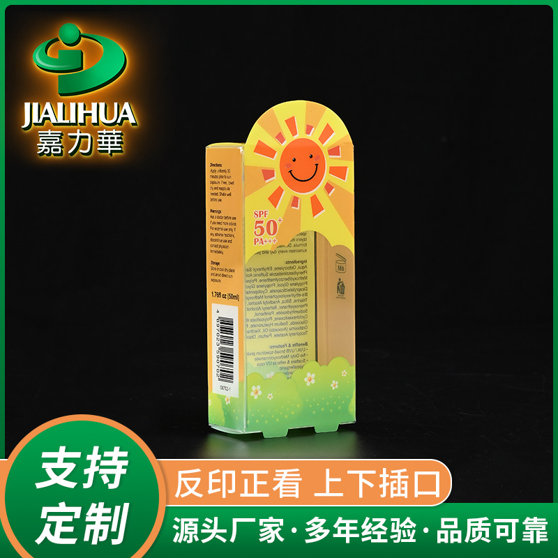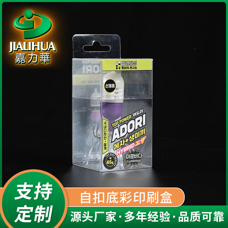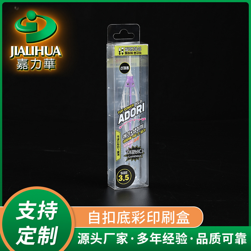 ボタンの底からカラー印刷された透明な包装箱には、防油petフックケースのプラスチック製の折り箱フック式が印刷されています