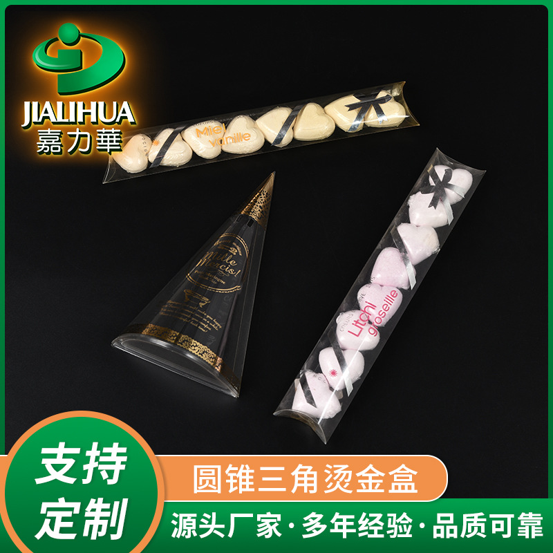 円錐三角箔押し箱キャンディーチョコレートpet包装箱プラスチック製品内托pp/pvc無料サンプル