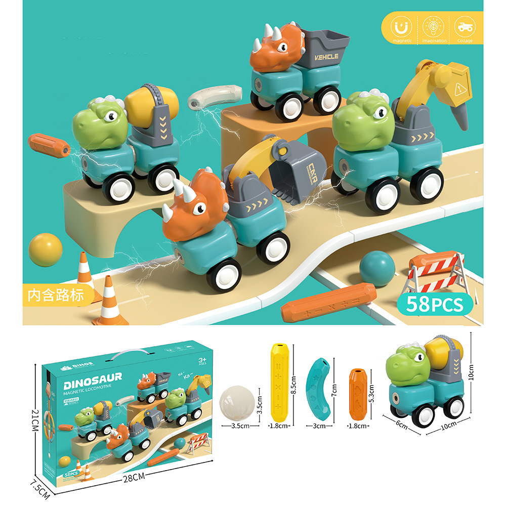 クロスボーダー磁気恐竜工事車セット多車接続児童知育玩具