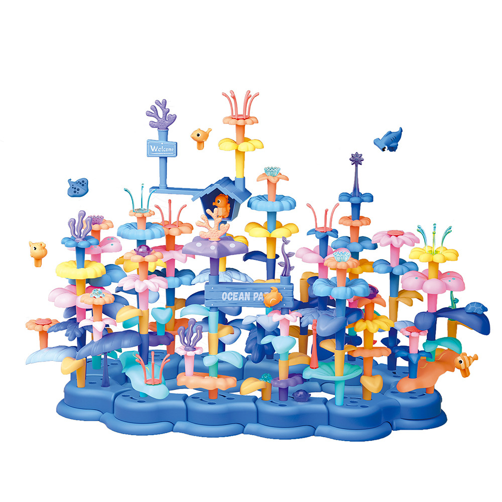 国境を越えた新型児童海洋サンゴ百変DIY積み木世界知育組み合わせ玩具