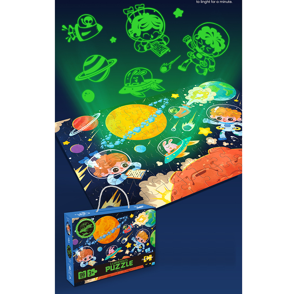 子供夜光パズル漫画動物平面紙96pcsプレゼントボックスDIY知育パズル玩具