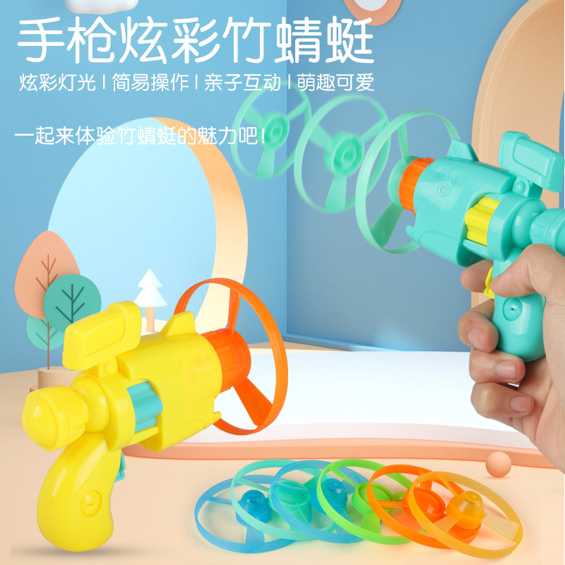 竹トンボのピストルの空飛ぶ屋外の発光の空飛ぶ円盤は回転のフリスビーの子供の飛行のおもちゃのジャイロの卸売りを発射します。