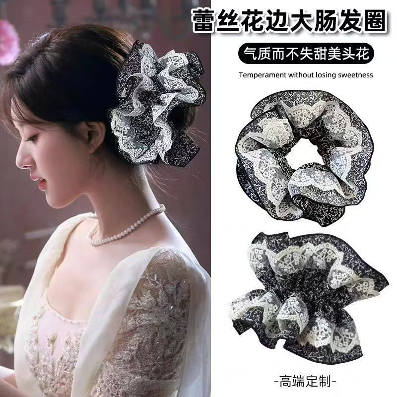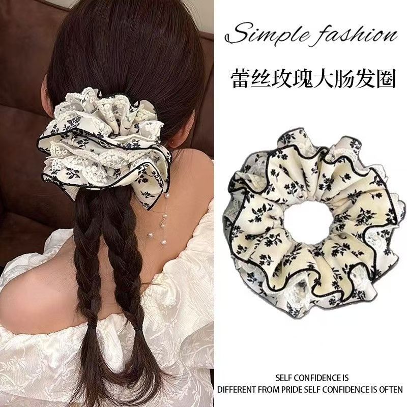 女の子向けのフレッシュレースの小花柄の大きなヘアゴム、絶妙なヘアロープ、シンプルなヘアボールヘアゴム、気質の大きなヘアゴム