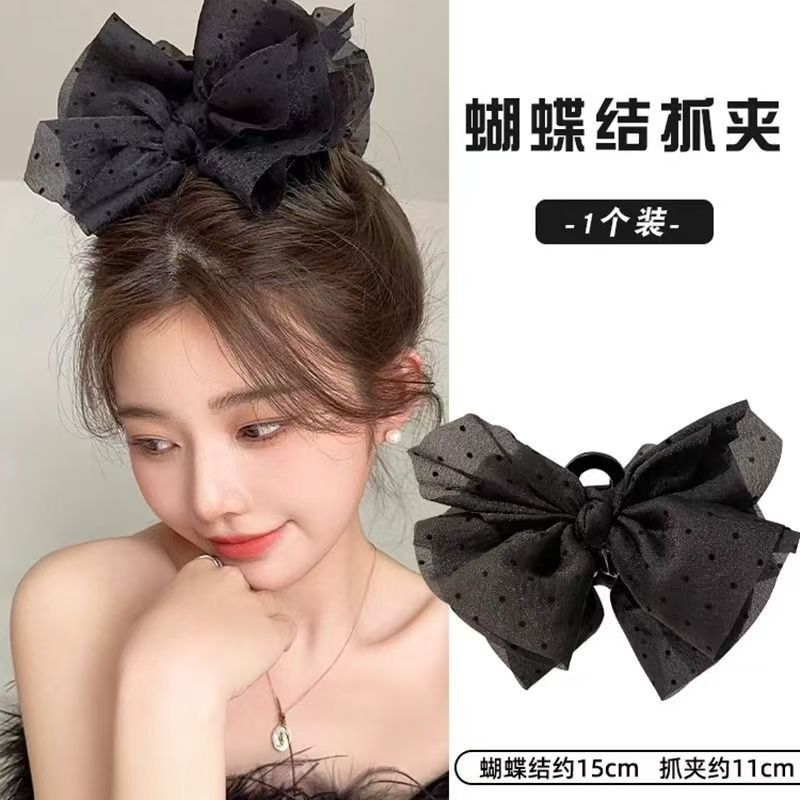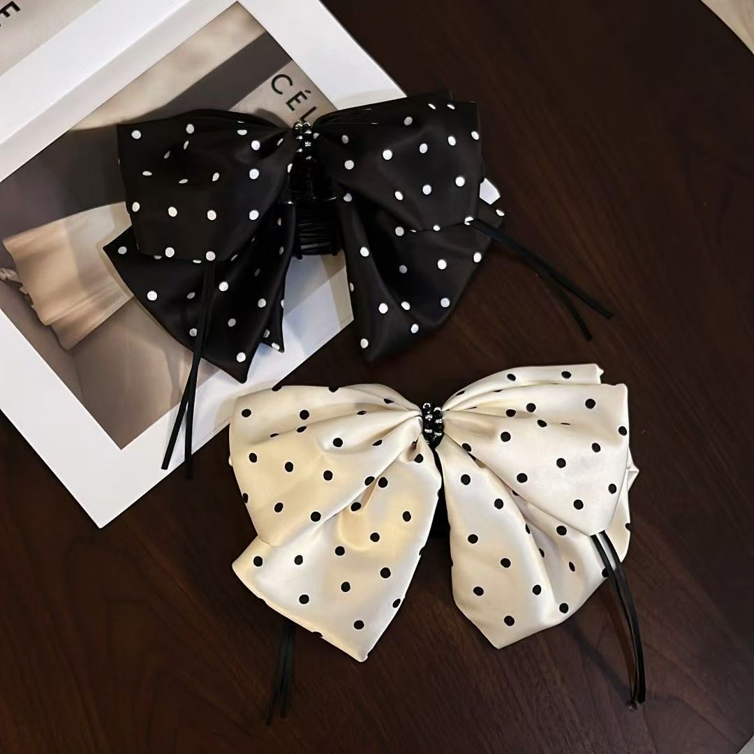 ファントム水玉模様の不規則な大きなリボンヘアピン、高級感のある頭頂部の気質ヘアアクセサリー、後頭部のシャーククリップ