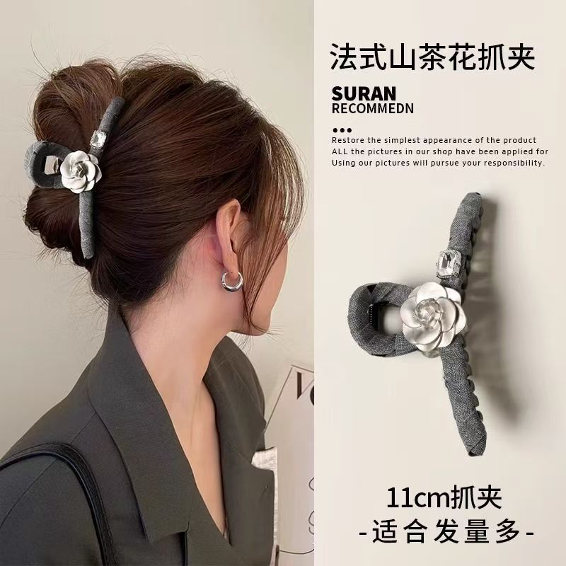 カメリア生地グレー大きなリボンクリップ後頭部ヘアピンかわいいウサギの花プリンセスサメクリップ女性用