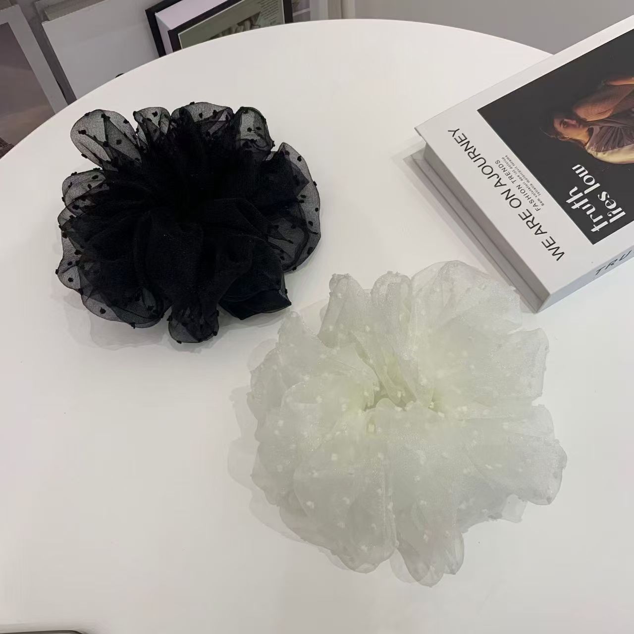 韓国風メッシュドット特大ヘアゴム、女性用、高級、ファッショナブル、多用途、デイリーシンプルヘアゴム、ヘッドバンド