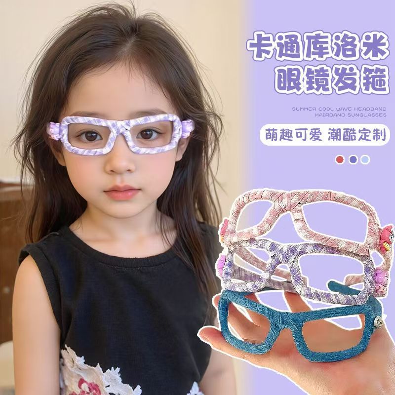 子供用デニムメガネフレームヘアバンド、女の子用洗顔ヘアクリップ、頭を締め付けないヘアバンド、多用途ヘアアクセサリー、リボン、2025年新作