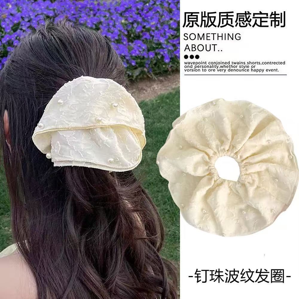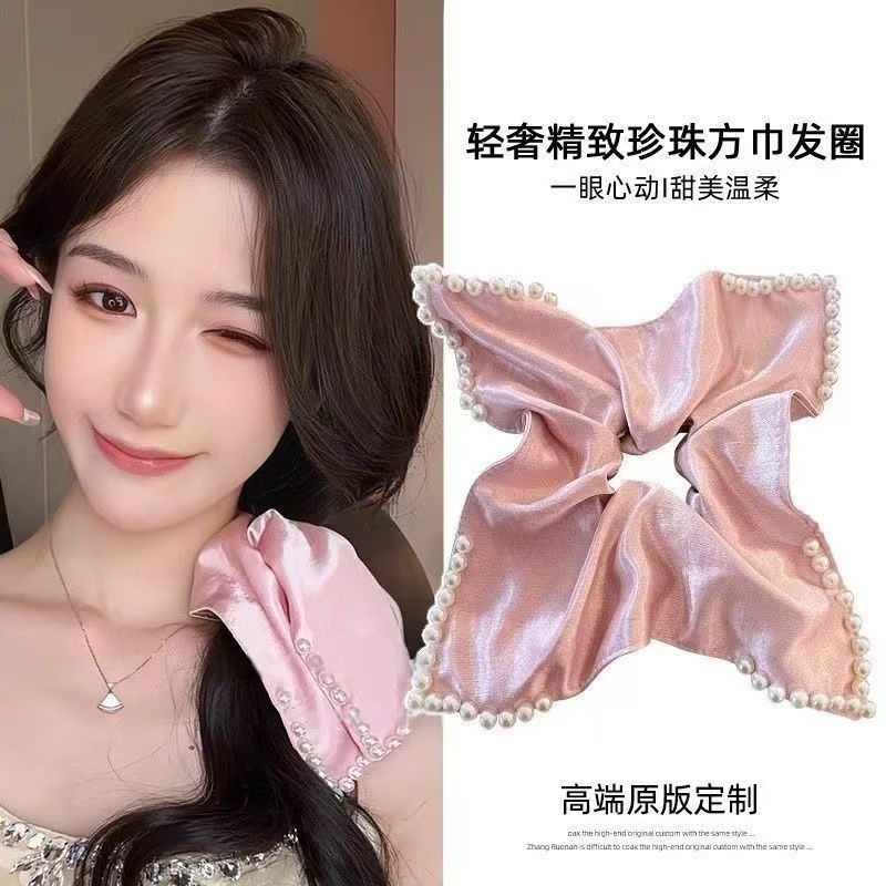 韓国風サテンパール特大スカーフヘアバンド女性用、ハイエンド、エレガント、ローポニーテールヘアバンド