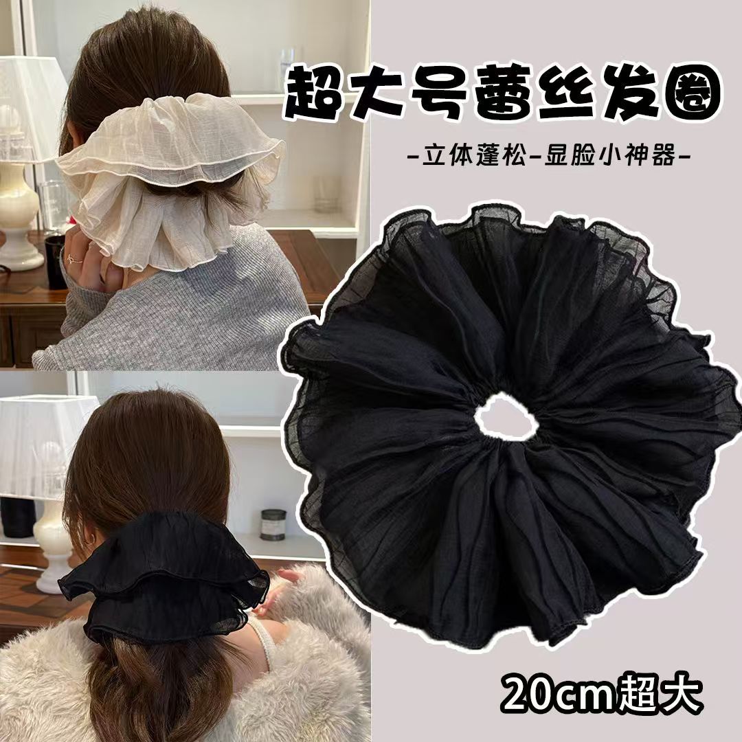 韓国風プリーツ特大ヘアゴム、メッシュヘアゴム、レースヘアゴム、万能ヘアゴム、髪を傷めない、ふんわりヘアゴム