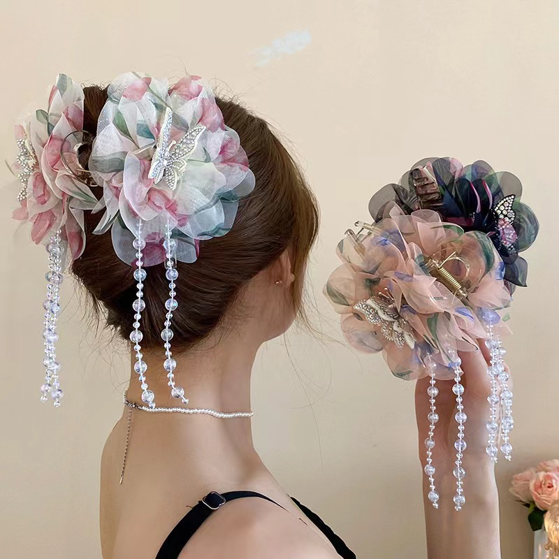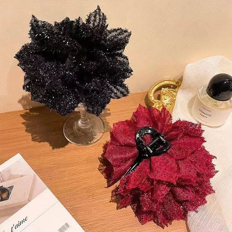 高級感のある網紗の大きい花のヘアピンの明るい糸の小さい香風は女性の後頭部のサメを挟んで復古の気質の頭飾りを挟みます。
