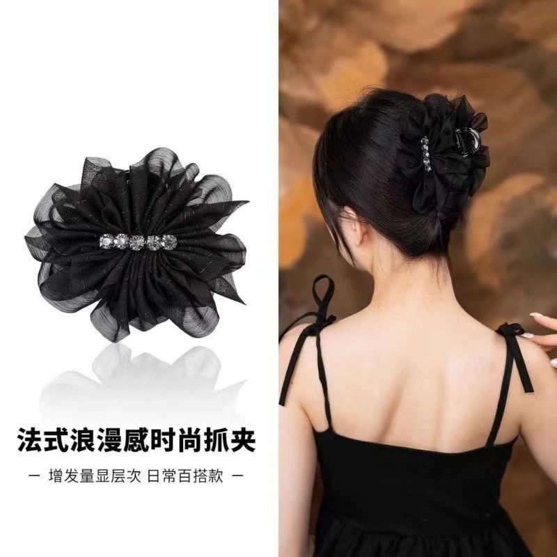 フレンチスーパーフェアリーチュールリボン、輝くダイヤモンド、大きなクリップ、ハイエンドの絶妙なヘアクリップ、気質のあるサメクリップ、女性用ヘッドウェア