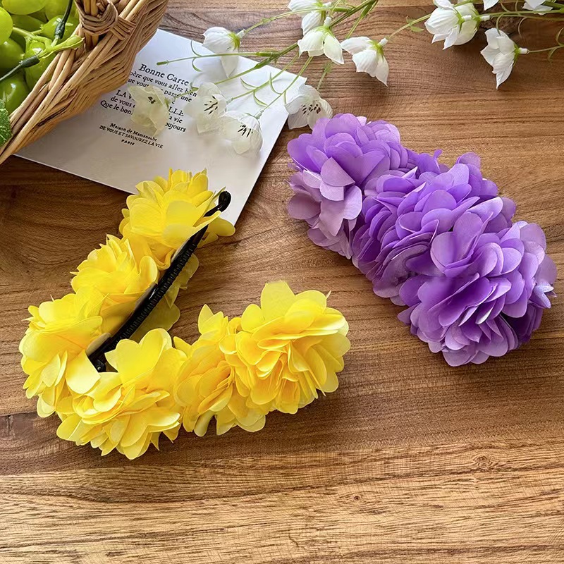 雰囲気のある人魚風デザインの黄色の特大バナナクリップ、高級感のある後頭部の女性用ヘアアレンジツール、花柄の韓国風