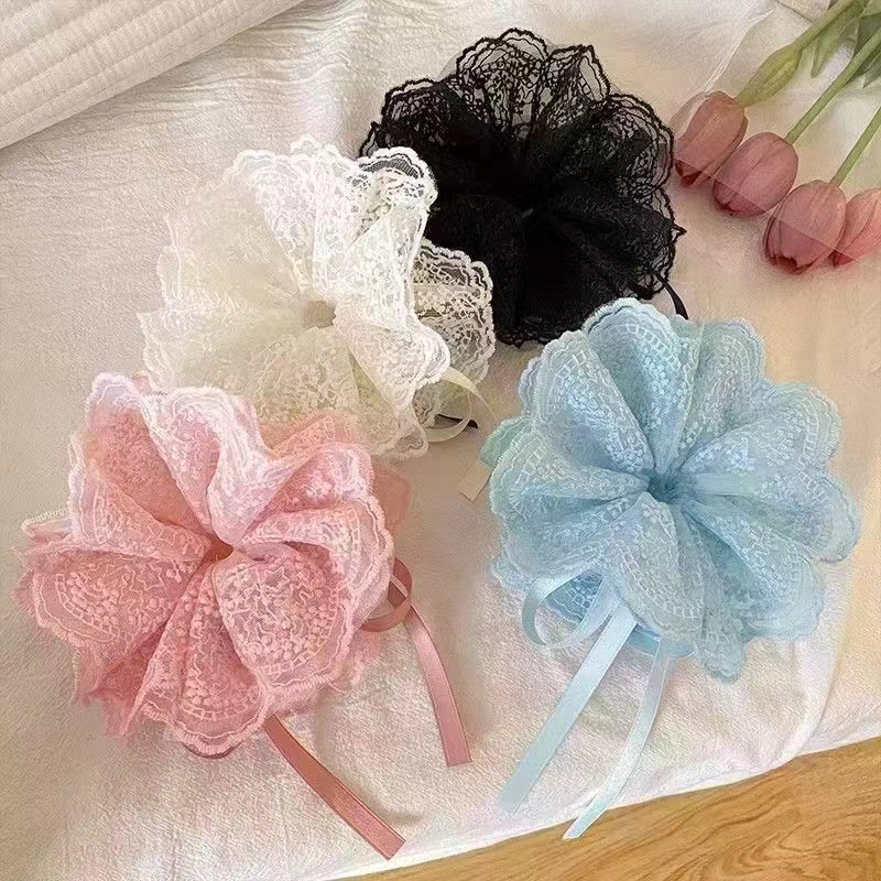 レース水玉模様のレースリボンヘアゴム、スーパーフェアリー、ハイエンド、ラージ、ファッショナブルで多用途な女性用ボールヘアアクセサリー