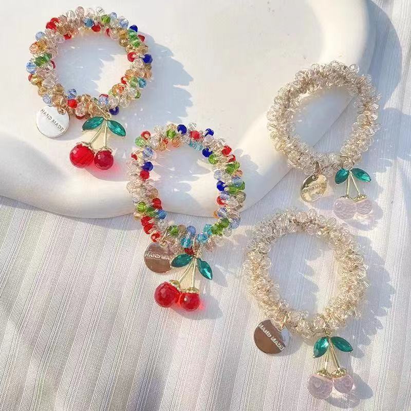 韓国のドリルの気質のカラーのさくらんぼの髪の縄の女性の娘の蜜のブレスレットの両用のカラーの水晶は馬尾の簡単な頭の縄を刺します。