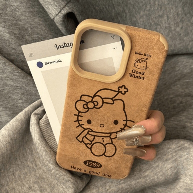 棕皮凯蒂猫适用苹果16plus手机壳iPhone15新款14promax跨境13女12