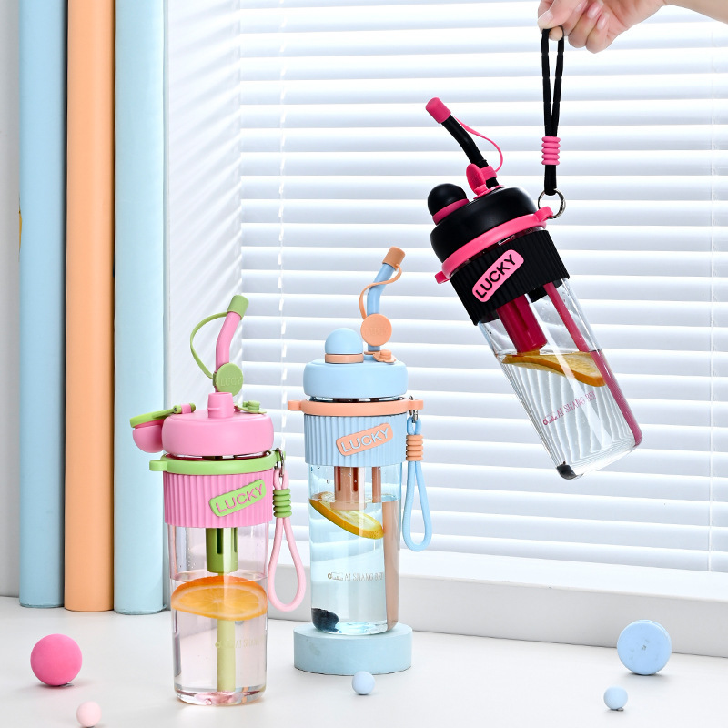 双饮塑料水杯女生高颜值户外便携网红水杯大容量果茶杯硅胶提手