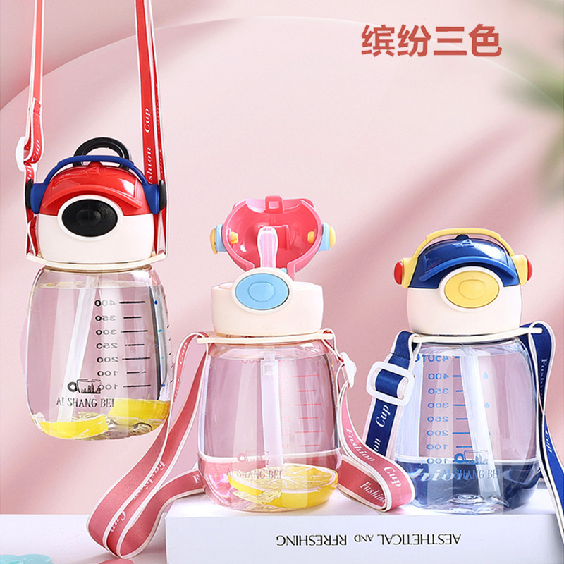 鲁班七号塑料便携卡通吸管杯儿童水杯儿童背带旅行杯帽子杯