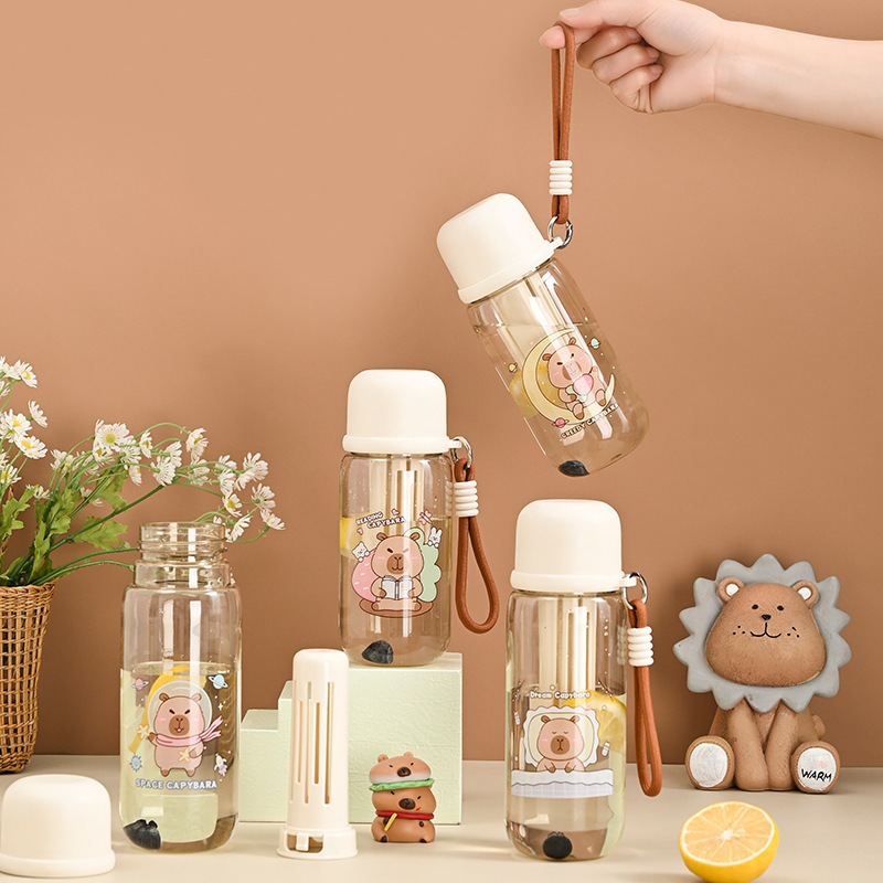 新款卡皮巴拉高颜值可爱随手杯带茶漏提绳卡通学生儿童水杯耐摔杯