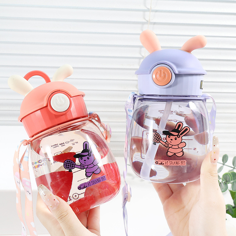 网红新款可爱儿童弹跳学饮杯卡通鹿角吸管杯带背带小巧便携塑料杯