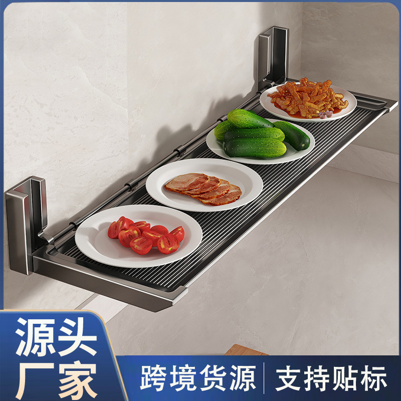 台所の物置棚の料理棚は穴を開けないで壁掛け式の多機能折りたたみ収納棚の鍋蓋の調味料棚の食器棚です。