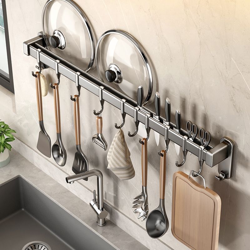キッチンフック、パンチフリー、壁掛け多機能収納ラック、フック、スパチュラ、スプーン、ナイフホルダー、収納ラック、ガンアッシュ