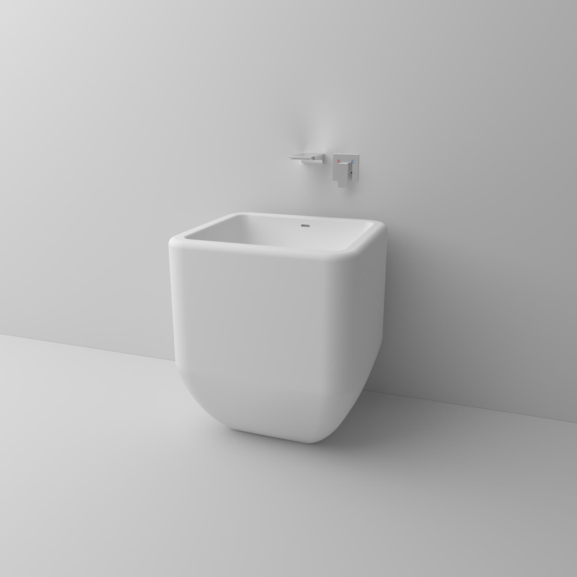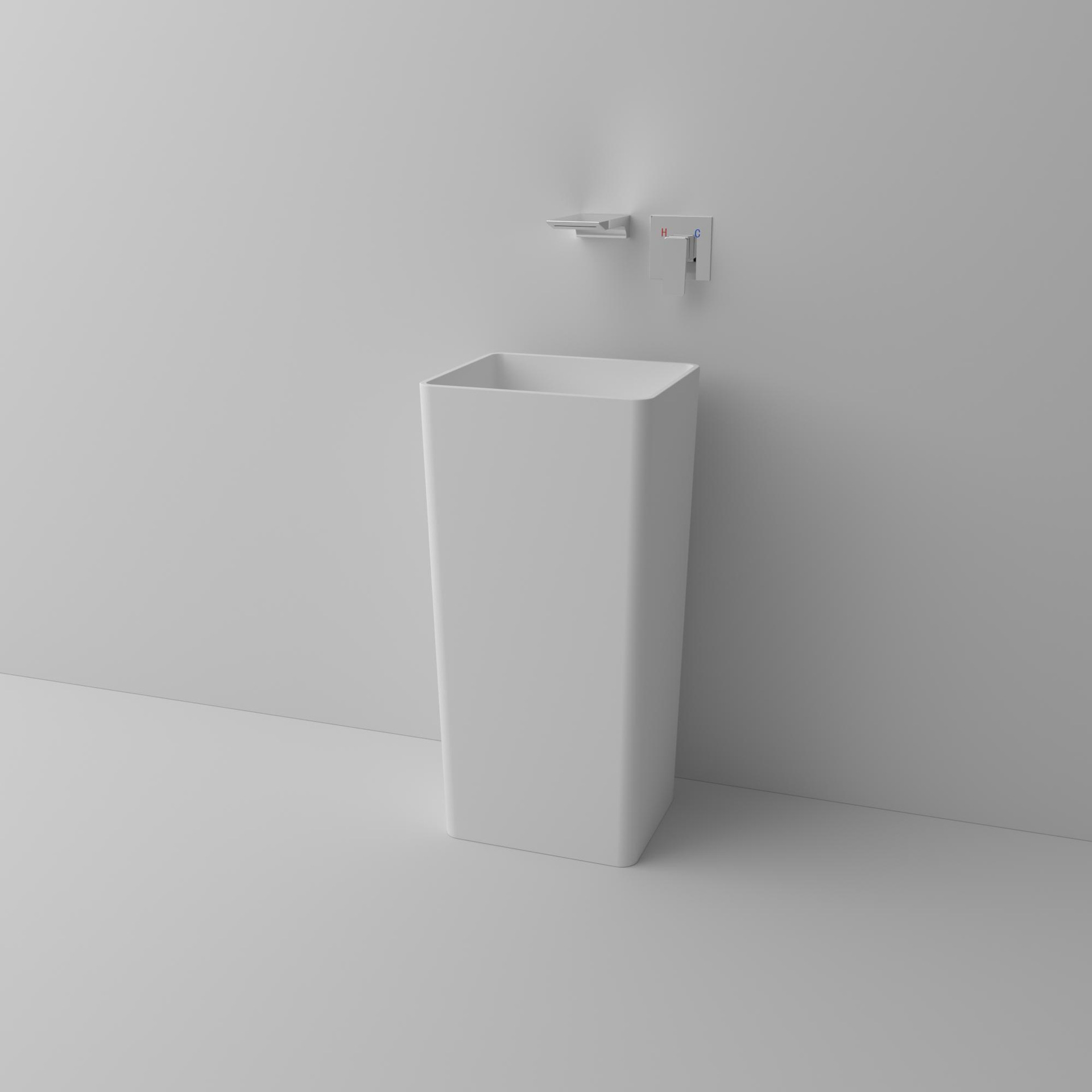 人造石の柱のたらいのトイレは蛇口の穴がありません。