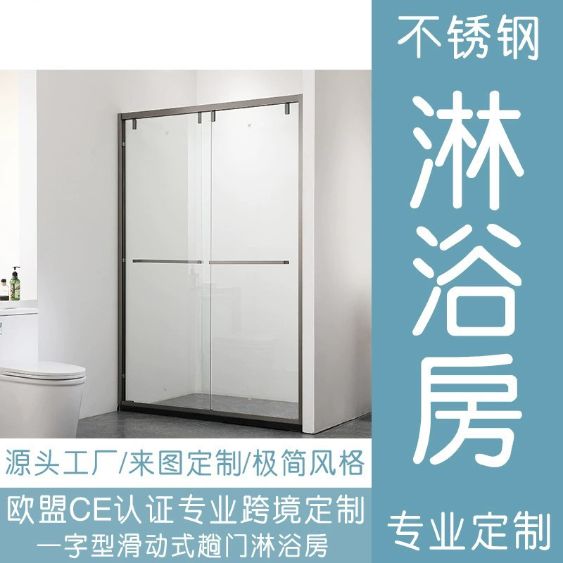 一字型ステンレスシャワールーム二重可動スライドトイレ風呂間乾湿分離ガラスシャワー遮断