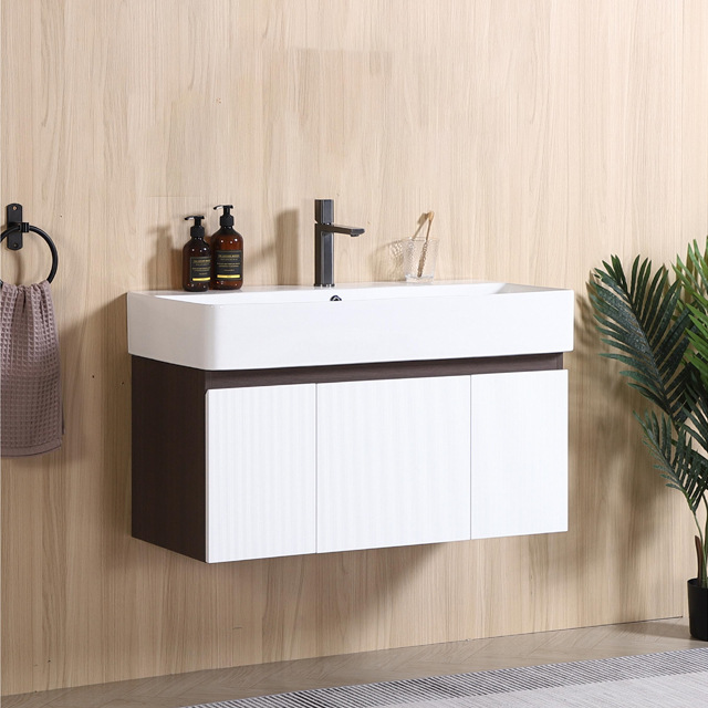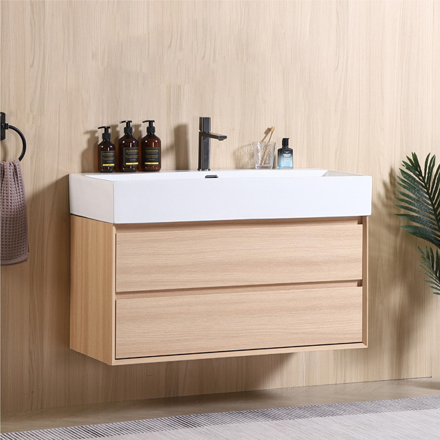現代簡欧円弧角浴室キャビネット可丽耐一体陶磁器盆実木焼付塗装洗浄浴室キャビネット輸出アメリカ