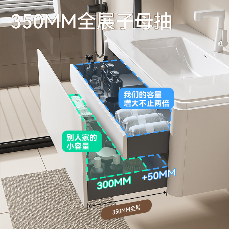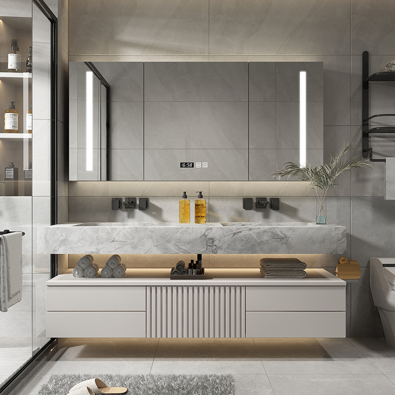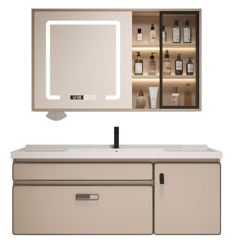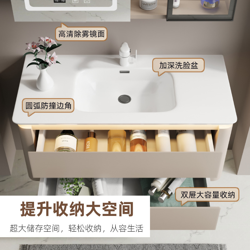 岩板一体シームレス陶磁器盆軽贅沢浴室キャビネットセットスマートミラー吊りキャビネット洗面台