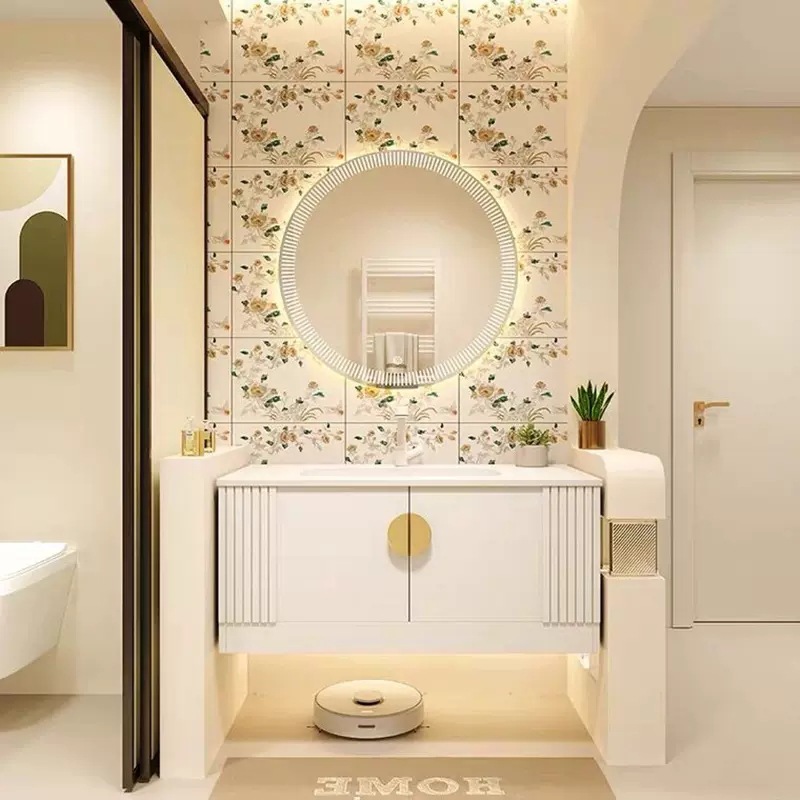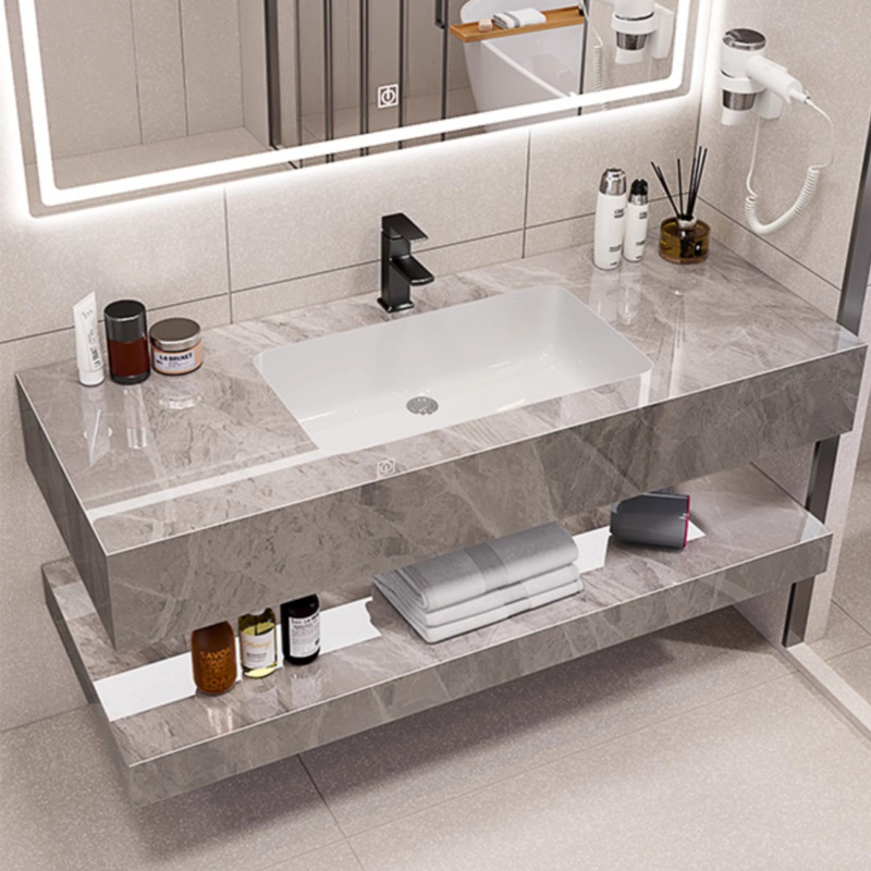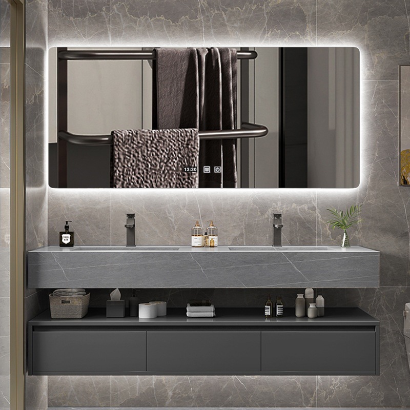 スマートミラーキャビネット二重セラミック洗面器浴室キャビネットセットホテルトイレ洗面台岩板セラミック一体洗面器