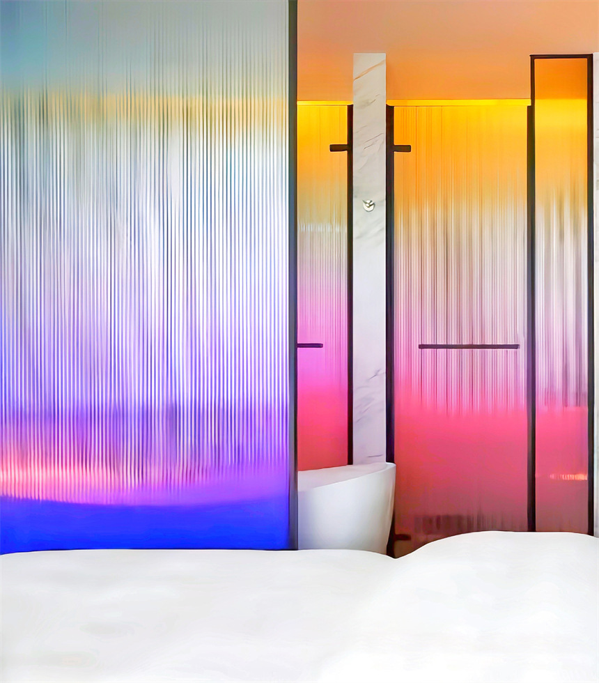 二層強化つや消しグラデーション合わせガラスホテルトイレシャワールームカラーガラス