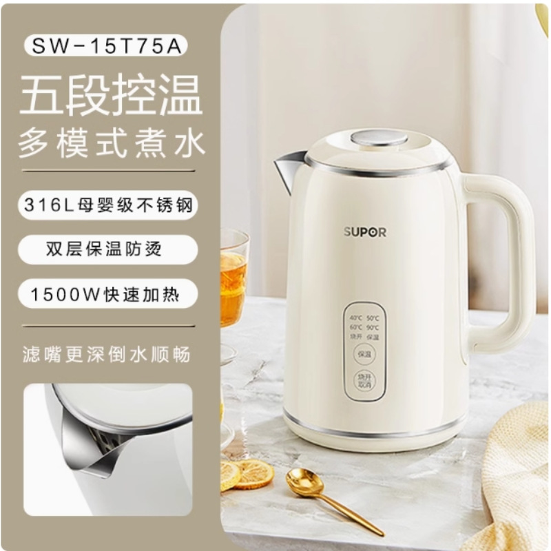 蘇泊爾1.5L側顕温母子級316Lステンレスタッチ操作5段調温保温SW-15T75A