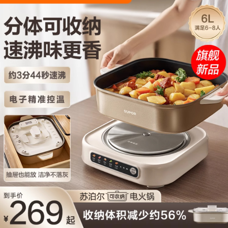 蘇泊爾電気鍋家庭用分体式電気鍋6l大容量鍋は鍋にくっつかないで磁気炉h60fc 887