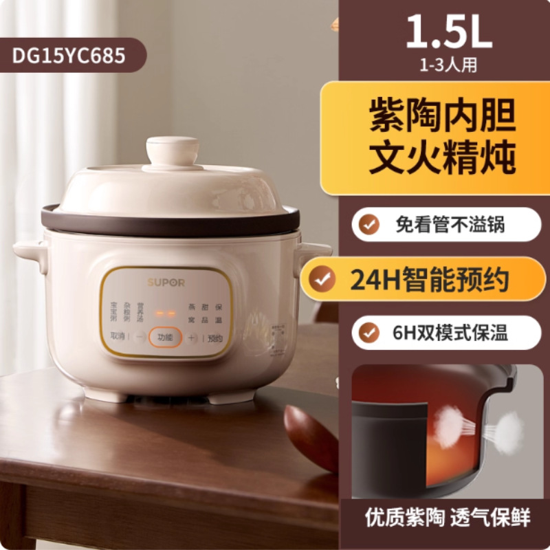 蘇泊爾電気シチュー鍋家庭用スープ鍋煮粥小シチュー自動乳児陶磁器シチュー鍋DG15YC618
